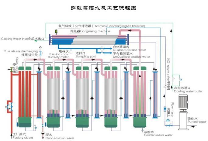 多效蒸馏水机是目前应用为广泛的注射用水制备系统的关键设备。多效蒸馏水机采用高温高压操作,确保稳定生产无热原注射用水。多效蒸馏水机所生产的蒸馏水,完全满足现行美国药典、欧洲药典、日本药典和中国药典中关于注射用水的要求,是医院、药厂、电子、研究等行业的蒸馏水制造设备理想的选择。